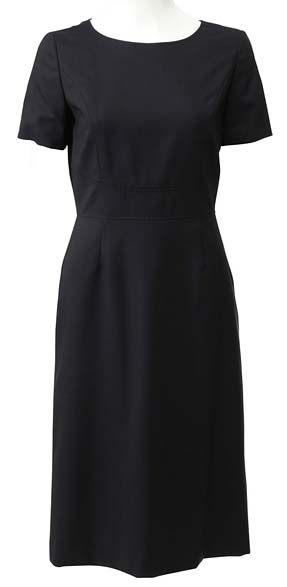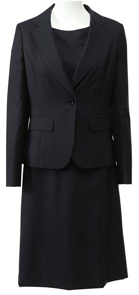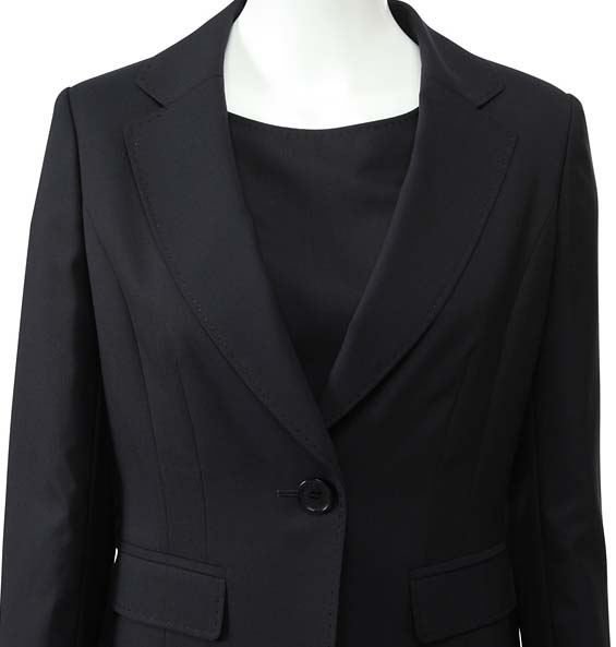 とてもシンプルなワンボタンのテーラードジャケットとワンピースのスーツ。