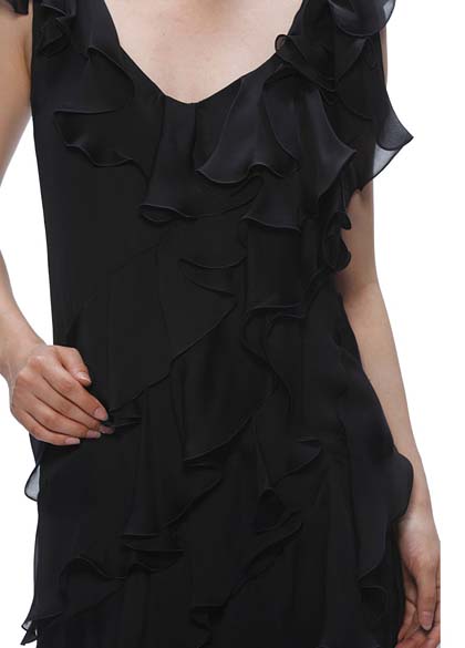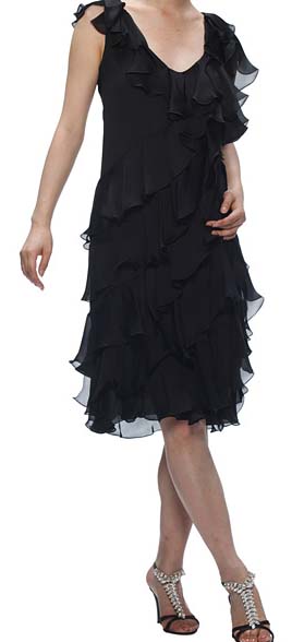 ブラックのフリル使いの素敵なミディアム丈のドレスです。