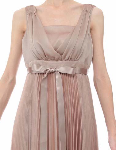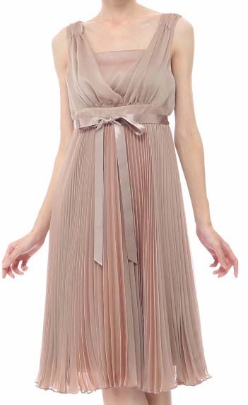 上半身はふわっと、スカートの細かなプリーツのがスレンダーに見せてくれるミディアムドレス。