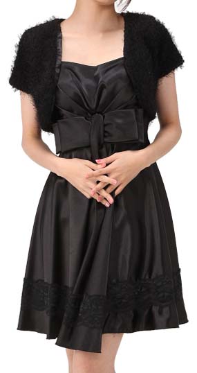 今の季節に欠かせない毛足の長いファーと光沢感のあるサテン地を組み合わせた、