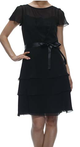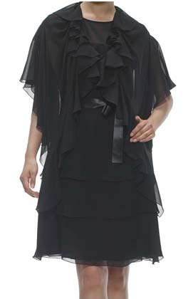 シフォン素材で、くろ一色でまとめられているのでボリュームのあるデザインでもシックに見えます。
